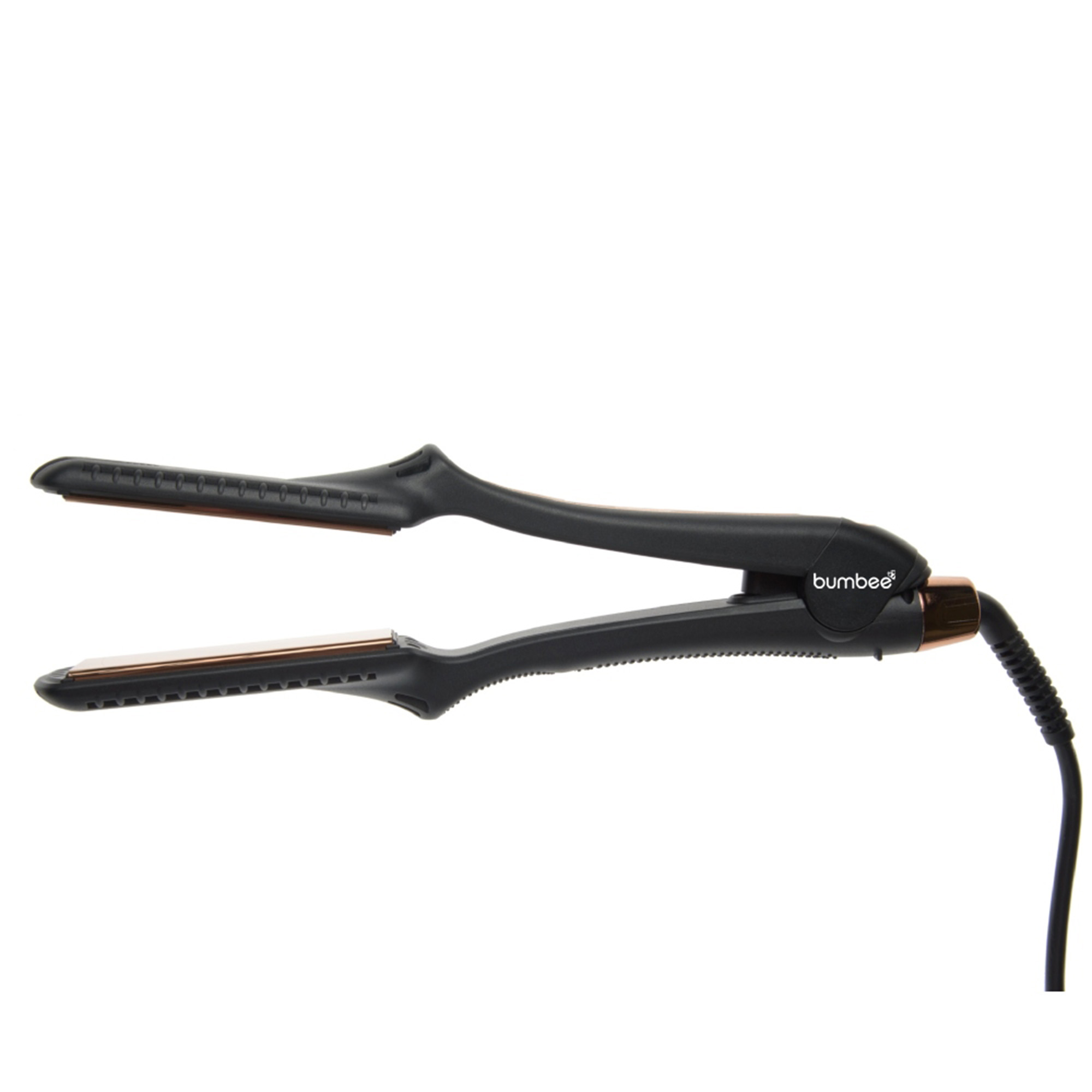 La alaciadora BUMBEE Rose Gold ofrece funciones simplificadas y 4 configuraciones de temperatura diseñadas para cada tipo de cabello. Esta alaciadora tiene un sistema de calefacción de cerámica especialmente diseñado que permite estilizar en una sola pasada, ahorrando tiempo. La producción natural de iones negativos producidos por el calentador de cerámica, previenen el daño y la sequedad del cabello. Sus placas de Nano Titanio reducen el frizz, dejando el cabello suave y brillante.